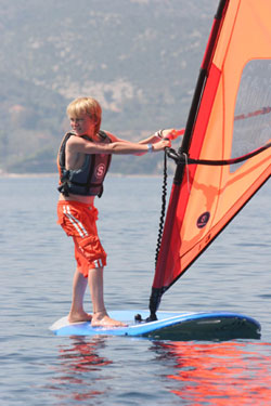 Ollie didn't particularily like sailing in Vounaki at this point, but wanted to try out windsurfing and wakeboarding. I hadn't been in a multihull since Corsica and had forgotten the bare essentials.